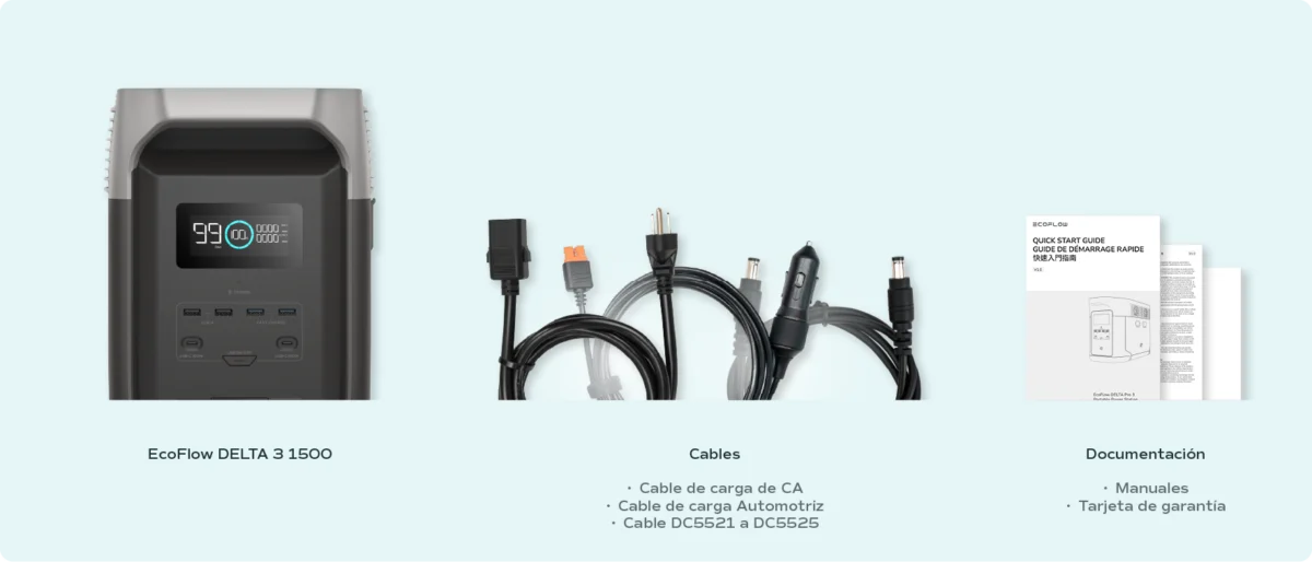 •Capacidad ampliable de 1,5 a 5,5 kWh con batería adicional DELTA 3, batería adicional DELTA 2, batería adicional DELTA 2 Max o batería adicional DELTA Pro 3